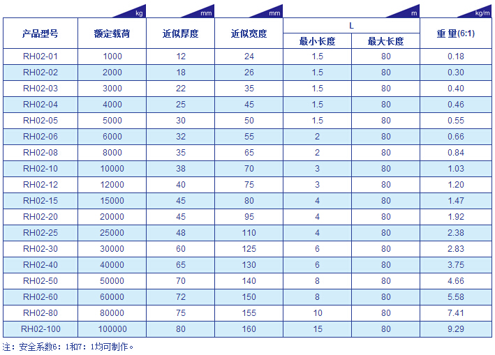 RH02型(高強環眼型)吊裝帶參數表