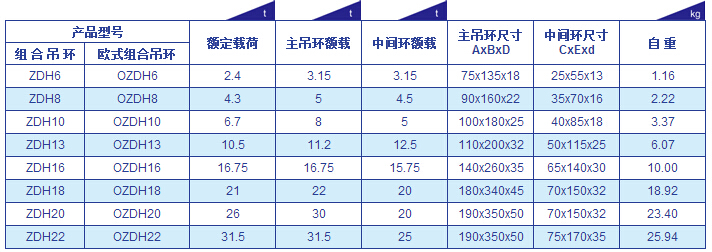 巨力G80組合吊環(huán)參數(shù)表