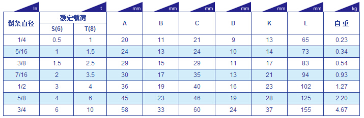 巨力美式羊角滑鉤(帶保險卡)參數表